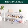 Space-Saving Design: Compact yet roomy (27″W × 11″D × 18.3″H), our shoe racks fit snugly in tight spaces. Stack units vertically to maximize storage, making it ideal for garages, walk-in closets, and small apartments