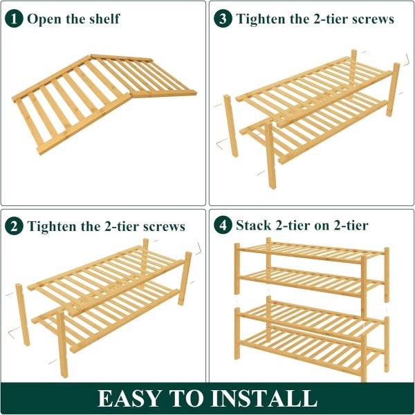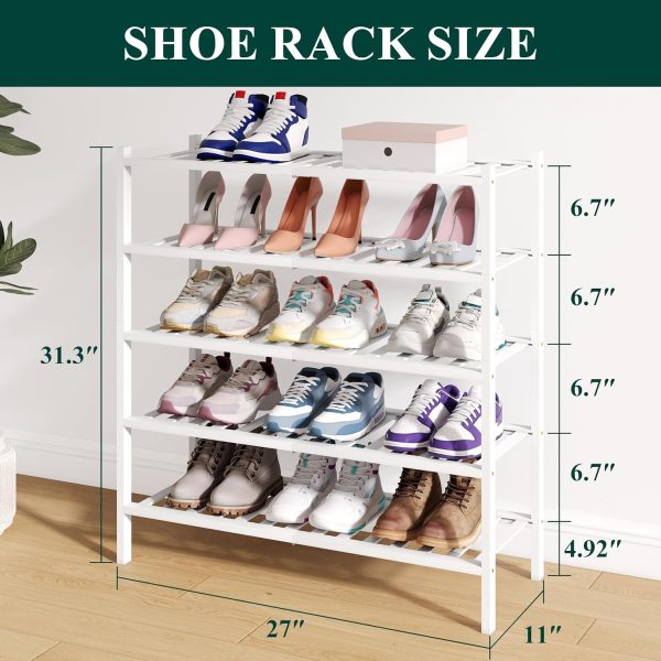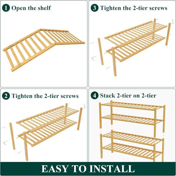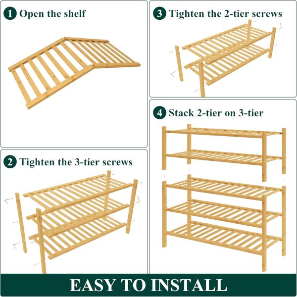 Sturdy Construction: Built with reinforced bamboo, our shoe organizer features a thick, durable frame, sturdy shelves, and solid legs for superior stability